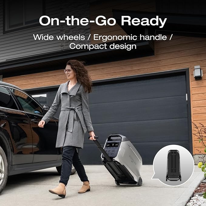 - [Plug and Play] Experience hassle-free power with the DELTA Pro 3, a versatile portable power station that's easy to set up, even a kid can manage it. No installation or maintenance required. Its portable handle design makes this solar generator perfect for clean, renewable energy anywhere, anytime. Control and monitor your power with the EcoFlow app, even remotely.