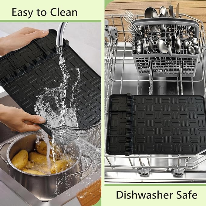 - [Easy to Clean & Store Silicone Grill Mat] Silicone griddle tools mat can be hand-washed or put in the dishwasher, saving you time and effort. After washing, you can roll it up or hang it on the hook to save space. An essential grill accessories for you