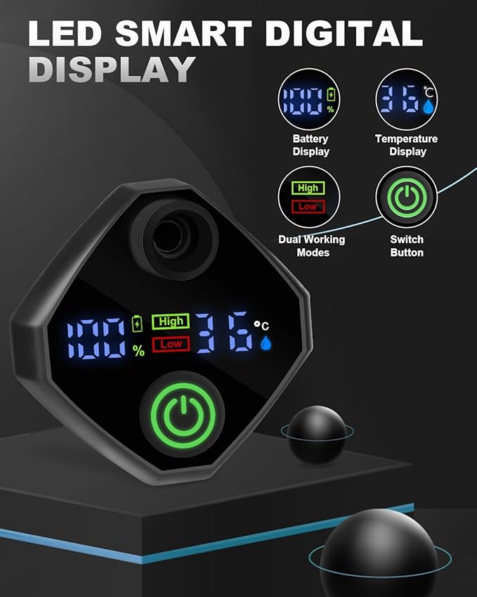 - LED INTELLIGENT DISPLAY --- Stay informed with the smart digital display that provides real-time information on remaining battery capacity, temperature display, and Shower operating modes, giving you complete control and visibility over the camping shower.
