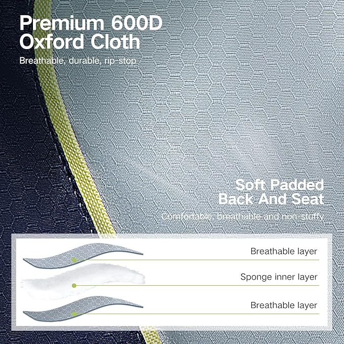 - 【CAMPING CHAIR With Premium 600D OXFORD FABRIC】 The lawn chair with ergonomic padded back, seat and armrest provide max comfort for your body. The durable double-layer 600D padded breathable oxford fabric with powder-coated steel tube frame enables you deserve a comfortable and safe chair.