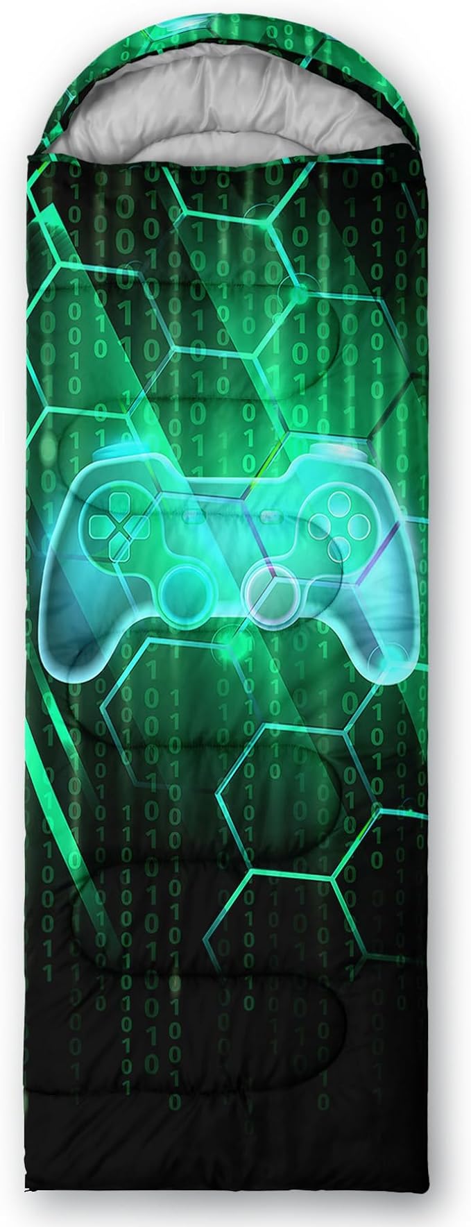 Axolotl Gamepad Sleeping Bag,3 Season Warm and Cool Weather Game Console Sleeping Bag for Boys Teens,Waterproof Lightweight Geometry Hexagonal Sleeping Bag for Traveling,Outdoors Camping,Blue,Black