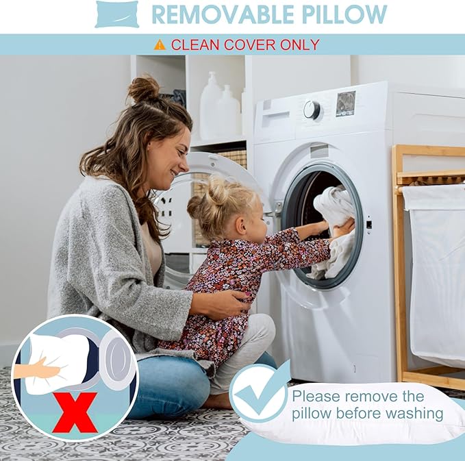 - ★Easy to Clean – The pillow is removable, Remove pillow before washing. machine wash nap mat in cold water with gentle cycle and tumble dry low, do not bleach.