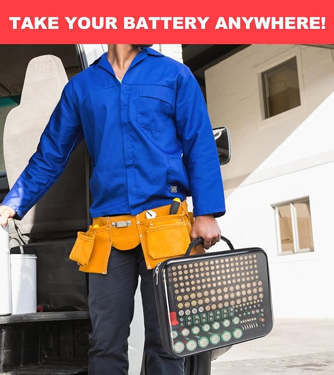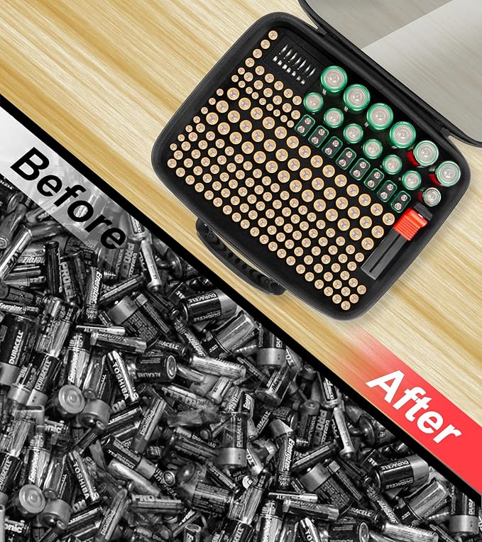 - Large Capacity Battery Holder: Offers large capacity to store over 200 batteries of various sizes in AAAA, AAA, AA, 9V, C, D,Button 4*3V lithium button type batteries. Extra bonus----comes with a removable battery tester. NOTE: (Batteries not included);