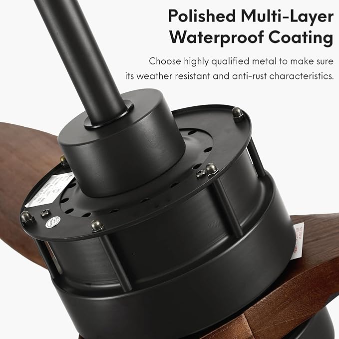 EKIZNSN 32“ Wet Rated Ceiling Fans with Lights Outdoor Hanging for Gazebo Waterproof, DC Motor w 3 Reversible Walnut Wood Blades, Walnut