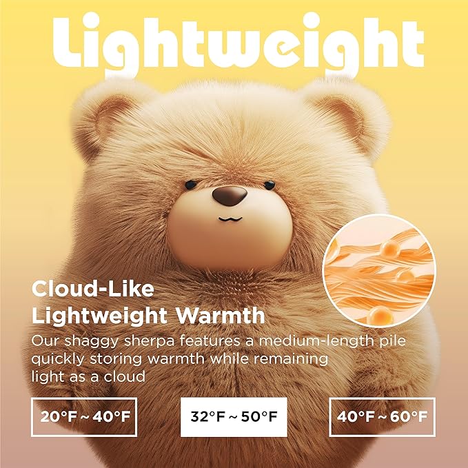 - Lightweight Yet Warm: Indulge in the soft, cloud-like comfort of our Shaggy Sherpa Hooded Wearable Throw Blanket. With its medium-length pile, it provides efficient warmth without the bulk, making it perfect for cozy relaxation.