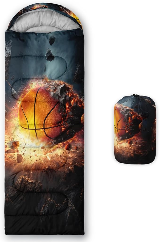 - 【Fashion Design】The sleeping bag is designed with a basketball pattern.This sleeping bag is lightweight and waterproof,which is perfect as a camping equipment to make your outdoor activities wonderful.It can also be given as a gift to your child if he loves the game of basketball.