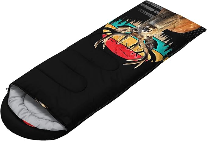 - 【Fashion Design】The outdoor camping-themed sleeping bag is printed with a deer parttern,which suitable for adults who like hunting.This sleeping bag is lightweight and waterproof,which is a good choice for camping hiking.