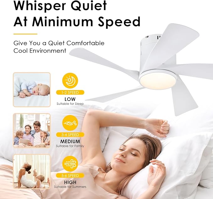 - Low Profile and Modern Design: The unique design features white rotating fan blades, adding a touch of elegance to your room decor. Our 36" flush mount ceiling fan is designed to fit seamlessly into any low-ceiling room. Its compact size makes it ideal for indoor, bedrooms, kids' rooms.