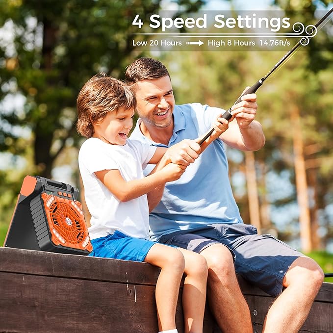 - 4 Powerful Speeds: This rechargeable fan offers 4 speeds with up to 14.76 ft./s airflow. Runs 18 hours on low and 8 hours on high, perfect for outdoor activities and travel