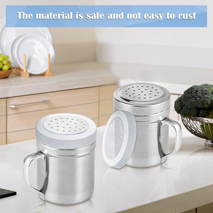 2Pcs Metal Salt Pepper Dredge Shakers, Stainless Steel Pepper Shaker Seasoning Jar With Handle, With Hole And Cover, Suitable For Pepper, Cinnamon And Coffee Spice Jars (Small-6OZ)