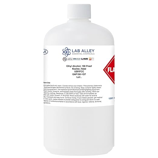 Ethanol 190 Proof (95%) Alcohol, USP/FCC Food Grade, Kosher Certified - 1 Gallon Total (Pack of 4 x 1 Quart Bottles)