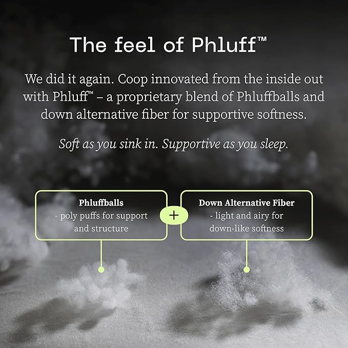 - You Sleep You: Our premium down alternative pillow feature the same signature adjustability of any Coop Home Goods pillow. Customize your queen bed pillows to your ideal level of comfort. Simply unzip the cover, add or remove stuffing, and get ready to sleep better! This queen size luxury pillow come with extra Phluff so you can fix it to your liking!