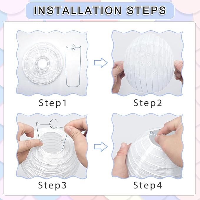 - ?�Easy to assemble?? Our lanterns are easy to unfold, assemble and hang up, and they can be folded flat for storage. All you need to do is to pull the two ends gently to open the lantern and insert the metal frame (included in the pack) into the lantern to keep its shape.