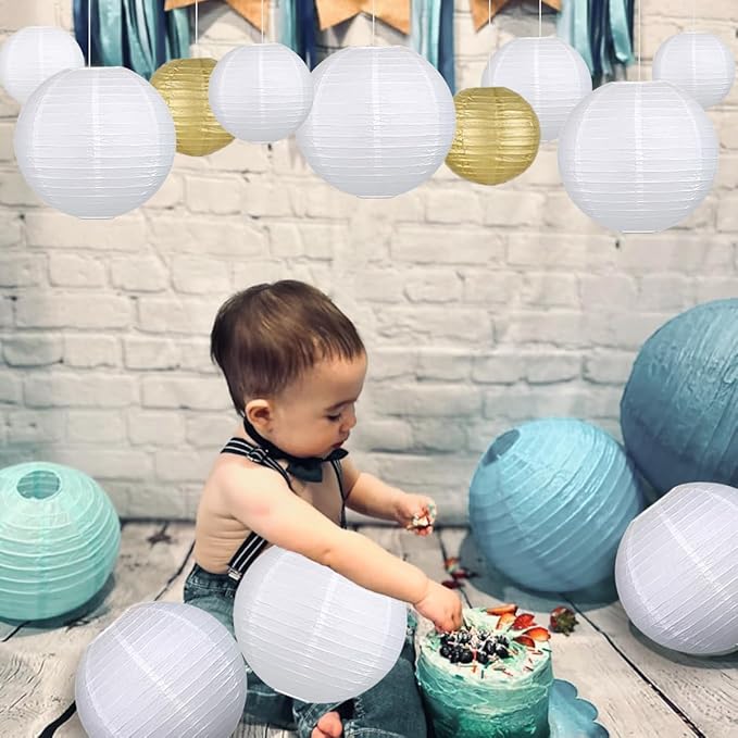 12Pcs Round Paper Lanterns Assorted Sizes (6" 8" 10" 12") for Home Decor, Restaurant, Church, Wedding, Birthday Party Decorations, Hanging Chinese Japanese Paper Lantern Lamps (White)