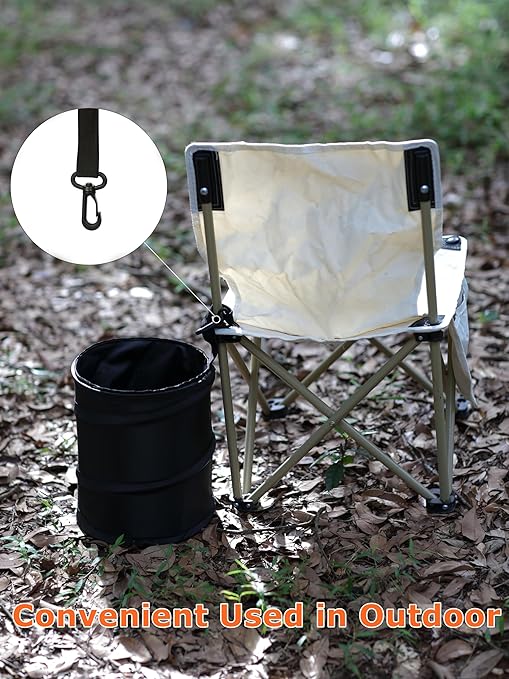 - EASY TO USE & MULTIPURPOSE - Portable trash can for car, can be hanged on both car headrests as well as the shift levers, or place this hanging car garbage bin on the floor and car seats, or any place in your car. Multiple installation options to meet different needs. The pop-up garbage bin can be used as clothing storage bags, household garbage collection bags, office trash cans, and household trash cans ect. Suitable for storing various items, sports equipment, children's toys, camping equipment or pet supplies. This camp trash can is also very suitable for camping and picnics.