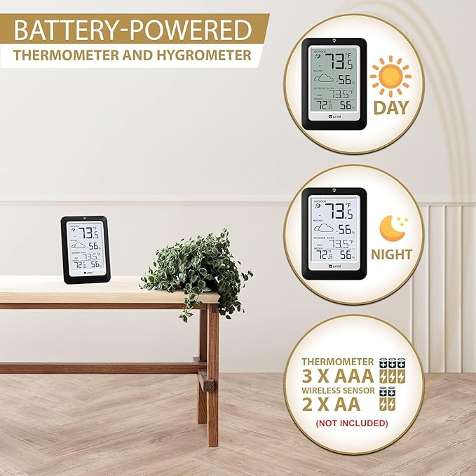 - WHAT YOU GET – You get the indoor thermometer with a display screen, an outdoor sensor, one-year warranty(not including batteries). Support up to 3 sensors, make sure they are in different channels.