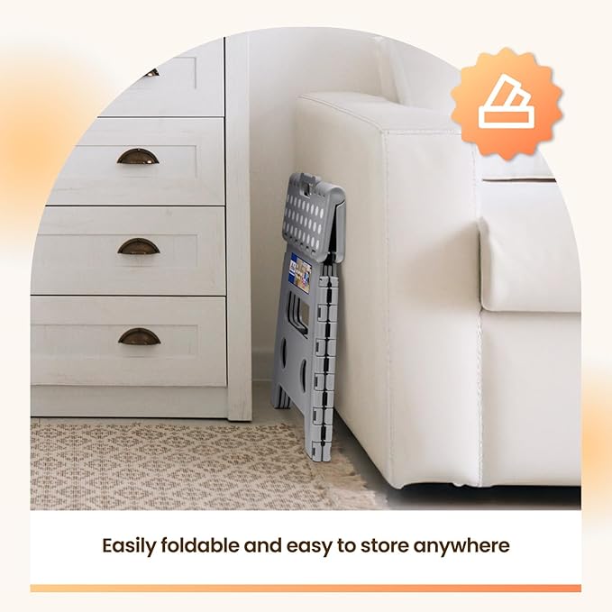 ACKO Folding Step Stool Foldable Stool 13 inch Plastic Stools for Kids and Adults Up to 300 lbs,Stepping Foot Stool with Portable Handle for Kitchen Closet Bedroom (Grey)