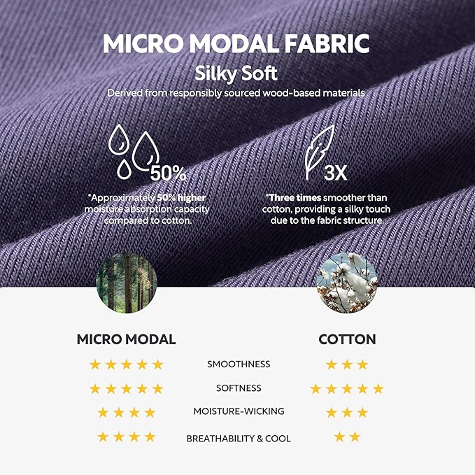 - SILKY-SOFT MODAL, LIGHT AND BREATHABLE: Made from premium Modal, these boxer briefs for men feel softer than cotton and smooth against sensitive skin. Lightweight, moisture-wicking, and breathable, they’re ideal as everyday men's underwear.