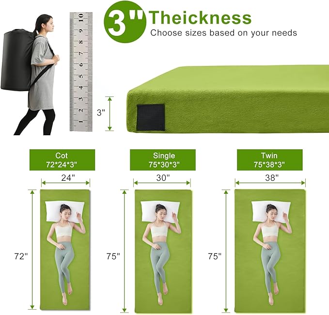 - 🏕️【The best choice for multiple scenarios】 As a portable and foldable mattress, it can be used as a temporary bed for hiking, camping, and road trips (various cars). It can also be used indoors as a guest bed, floor mat, nap bed, futon mattress, yoga mat.