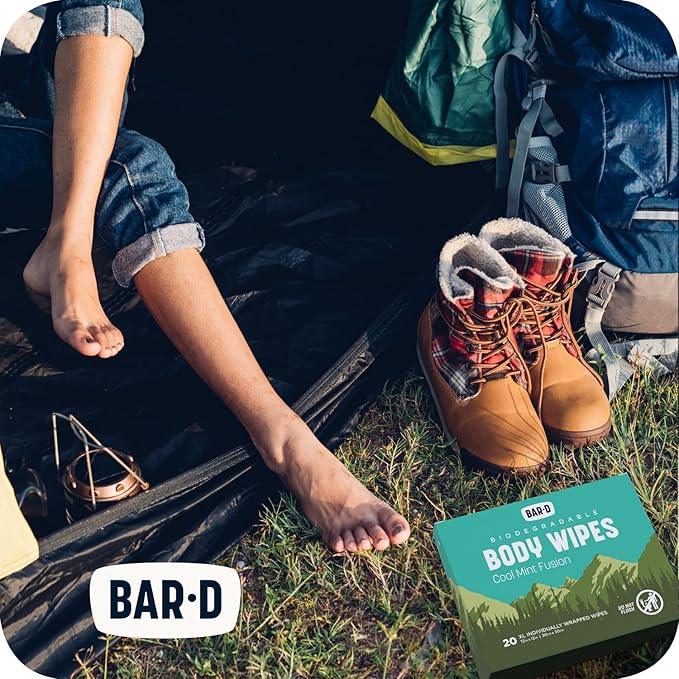 - Can't shower? Need a bath? Extra large and thick biodegradable body wipes are what you need! Wipe down your entire body. Face, armpits, undercarriage. Great travel gear, camping accessory, and a hiking must have!