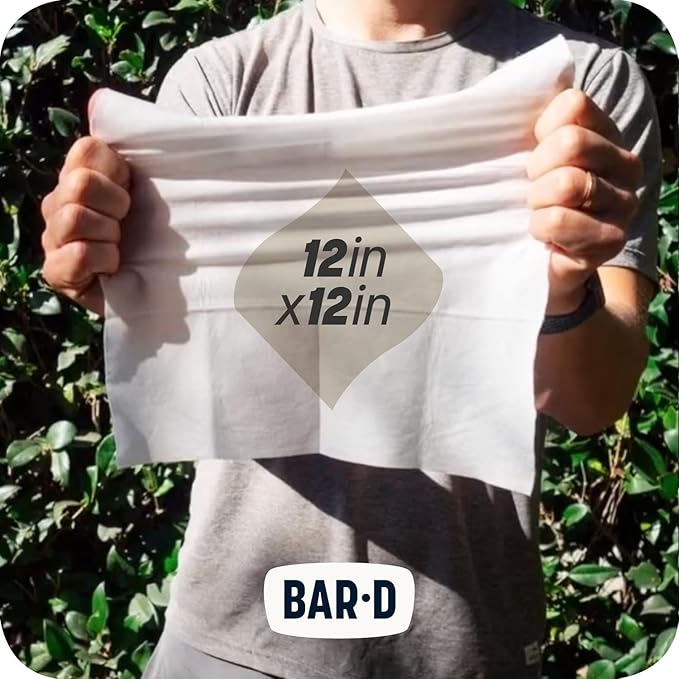 Bar-D Cleansing Face & Body Wipes for Women and Men - Individually Wrapped Biodegradable Shower Wipes, 12x12 Inch, Pack of 20 (20 Count/Box), Unscented