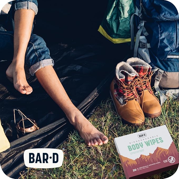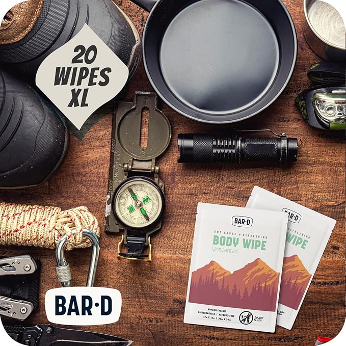 - Can't shower? Need a bath? Extra large and thick biodegradable body wipes are what you need! Wipe down your entire body. Face, armpits, undercarriage. Great travel gear, camping accessory, and a hiking must have!