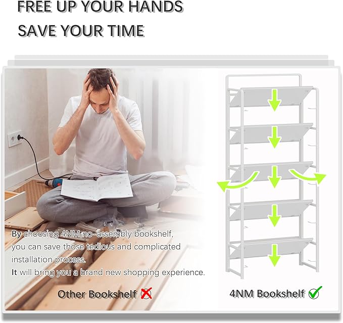 - 【No Tools Are Needed Bookshelf 】No screws need to be installed, and you can say goodbye to complicated installation steps. The foldable design without installation makes it possible for you to completely free your hands. You can unfold and fold up the bookshelf in just 30 seconds