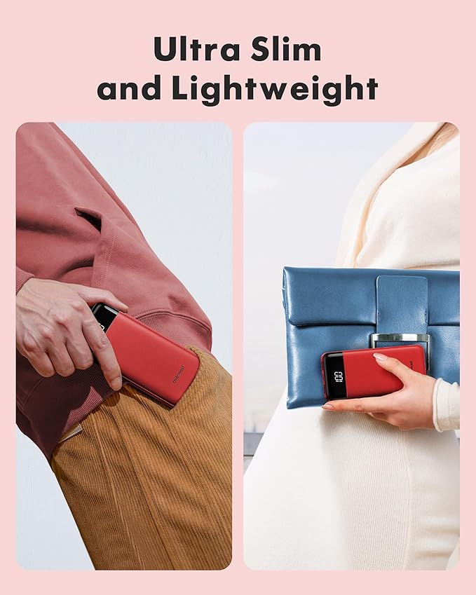 - 【Super Slim & Smart: See Your Exact Battery Level】Incredibly pocket-friendly design,lighter and slimmer than most phones! Always know exactly how much power is left thanks to the clear digital LED display. Never get caught off guard with a dead power bank again. Perfect for travel and daily carry!