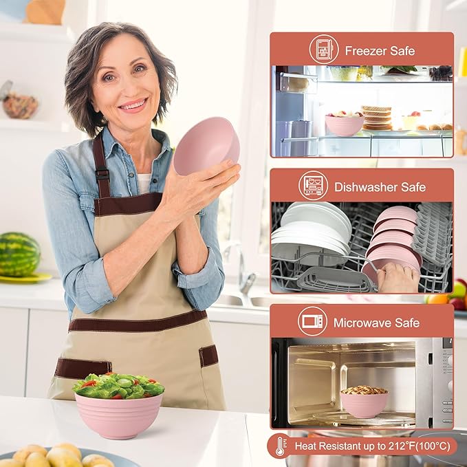 - 【Multicolor with 26 Oz Capacity】: These bowls come in a variety of vibrant colors and have a 26 oz capacity. They are deep enough for breakfast dishes like milk with corn flakes and also perfect for serving salads, fruits, rice, and noodles without any spillage. Enjoy your everyday meals at home or outdoors.