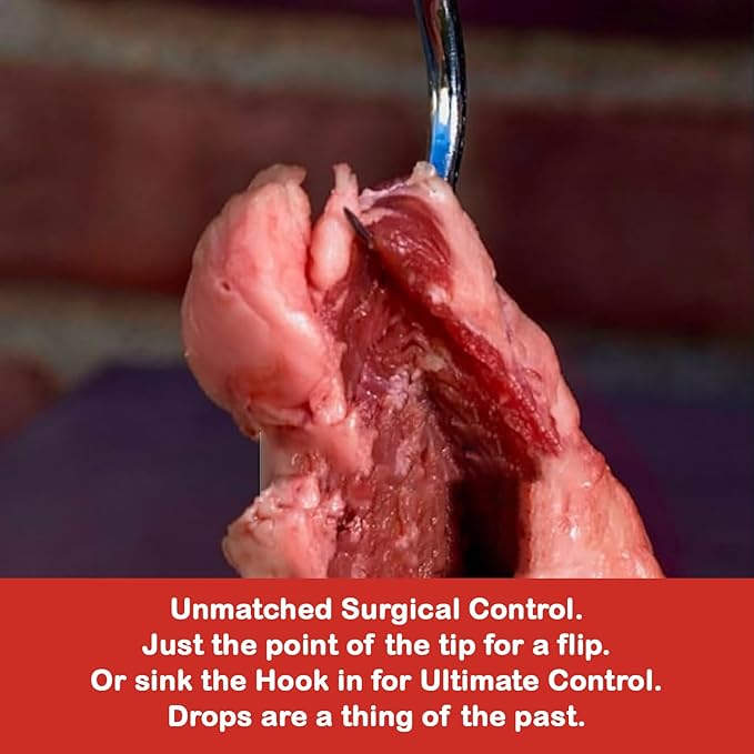 - Precision Control: The BBQ Hooker is designed for ultimate accuracy, allowing you to engage the fibers of proteins with ease for a firm and secure grip. Its precise design ensures you can maneuver, flip, and handle meats effortlessly.