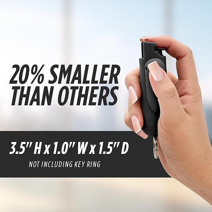 - COMPACT AND QUICK-ACCESS DESIGN: The pepper spray for women and men is 20% smaller and making it even more convenient to carry with you wherever you go. The included quick-release key ring provides faster access to the spray when every second counts. With a secure and easy-to-use twist lock safety mechanism, you can rest assured that your pepper spray is always ready for action while remaining safe to handle