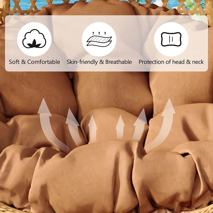 - 【High Quality Egg Chair】The strong suspension chain can hold up to 350 pounds and it's easy to adjust the height to fit what you need. The seat cushion and pillow headrest are made of 100% polyester and soft cotton. They're as soft as a cloud, breathable, comfortable, don't fade easily, and give enough support for a more relaxing and comfy experience. You can wash the seat cushion directl