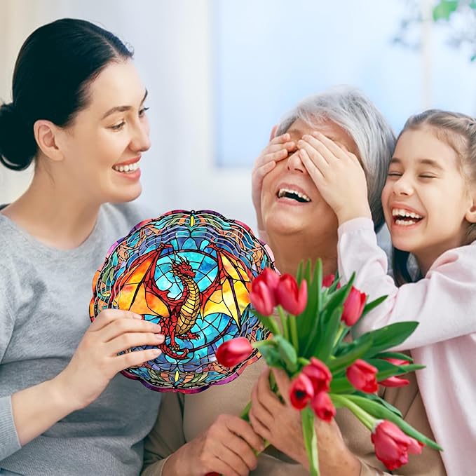 Dragon Wind Spinner, Dragon Wind Spinner Hanging for Yard and Garden, Unique Gift Wind Spinner, 3D Hanging Wind Spinner Outdoor, Cute Dragon Wind Spinner