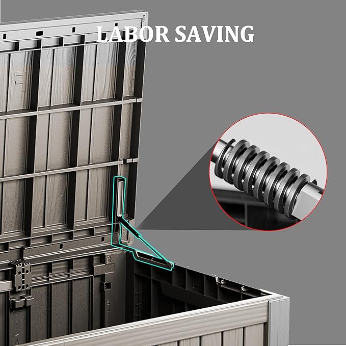 - Material: The patio outdoor storage box is made of the latest high-quality resin material, which makes this patio deck storage box waterproof, UV-resistant, anti-fading, and anti-bending protection, suitable for long-term outdoor use.