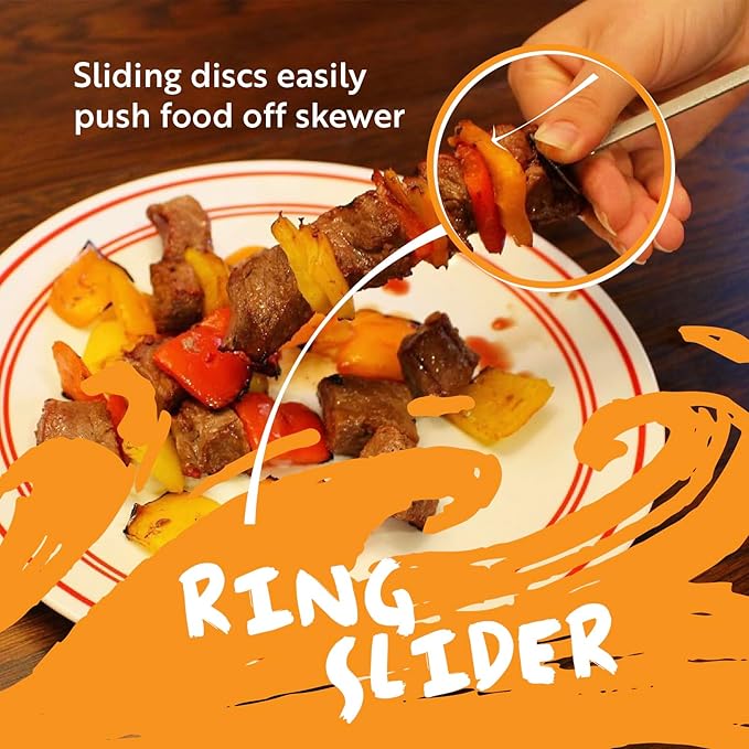 - Simple Food Removal & Versatile Presentation: Use the ring to slide food off the skewer when kebabs are finished grilling. Serve them up as presentation pieces at your dinner table.