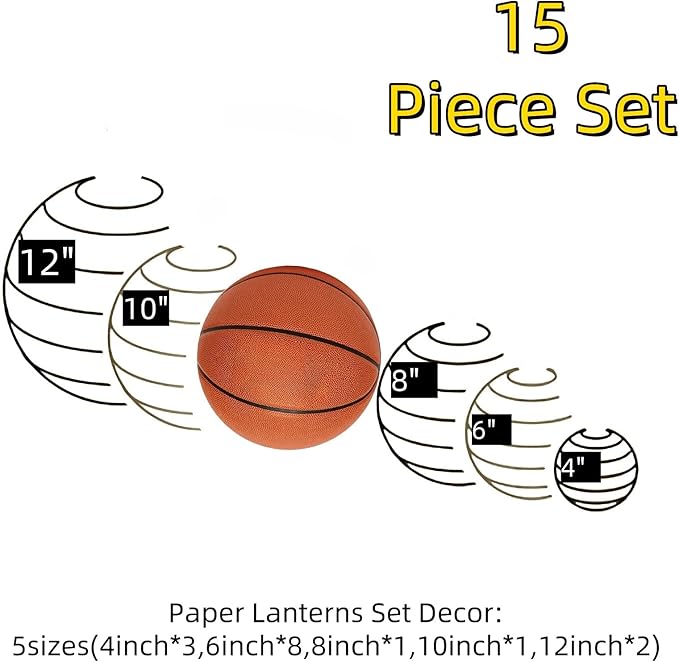 - PAPER LANTERNS SET DECOR:5 color(Green,Orange,brown,Gold,Ivory white).5sizes5 sizes(4 inch X 3,6 inch X 6 ,8 inch X 2 ,10 inch X 2 ,12 inch X 2 )