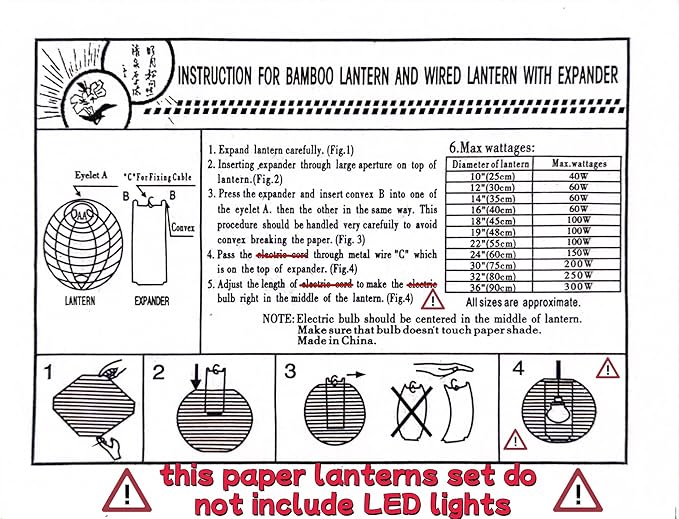 - WARM HEARTED TIPS: Paper lanterns Made of tissue paper,keep them dry conditions, faraway from fire and avoid stay in the rain,You can choose from this project and as your wish combine making them easy to hang and decorate with