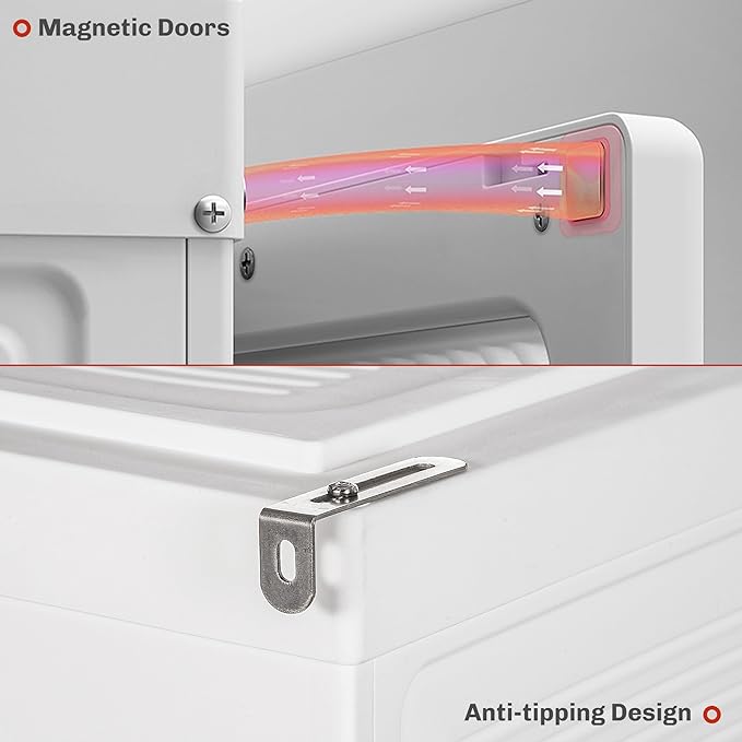 - Clever Design: Featuring magnets on each door, this portable cabinet closes firmly and protects your items from dust. You can also open a single line of doors simultaneously, with the connecting buckles locking two doors together for convenient access. In addition, there is a retractable rod for hanging coats and gowns without wrinkling.