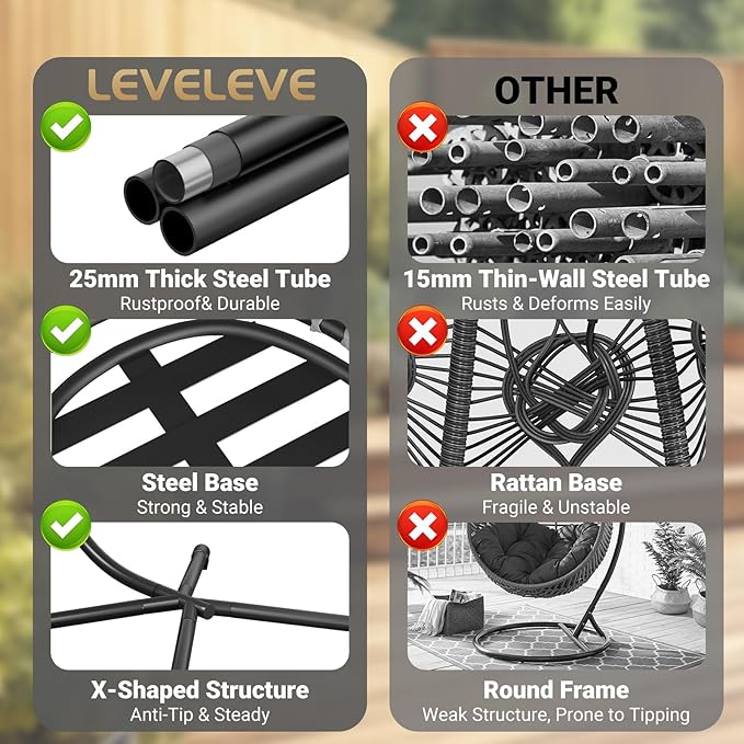 - 【Sturdy and Durable】:This egg chair with Stand is made of durable waterproof wicker and supported by a sturdy heavy-duty aluminum steel frame, with a weight capacity of up to 350 pounds, ensuring years of use.