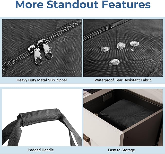 - Made of Sturdy, water-resistant 600 denier fabric material with premium heavy duty metal SBS 2-way lockable zippers(Not Including Locks). The padded shoulder strap for total comfort, the sturdy polyester body makes this duffle bag ideal for long-term use