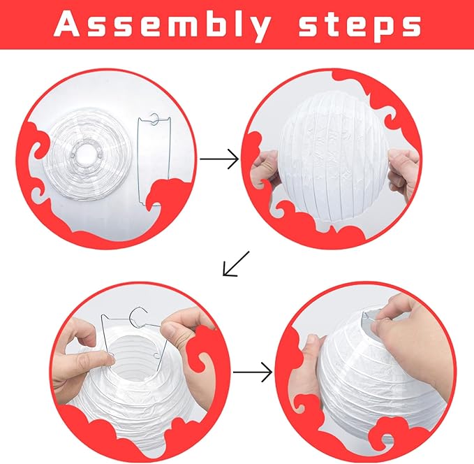 - ?�Easy to assemble?? Our lanterns are easy to unfold, assemble and hang up, and they can be folded flat for storage. All you need to do is to pull the two ends gently to open the lantern and insert the metal frame (included in the pack) into the lantern to keep its shape.