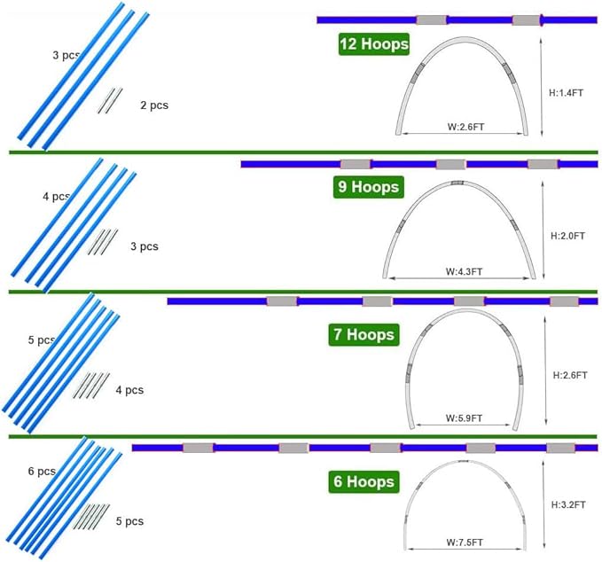- PRODUCT CONFIGURATION: You will get 36 fiberglass poles, 30 connecting tubes , 8 tent pole bottom seat。 gardening grow tunnels, small greenhouses, mini grow tents, can meet your various needs. Our fiberglass plant poles are 6.5 mm in diameter, thicker than normal plant poles, made of durable, environmentally friendly high quality fiberglass, flexible, green and healthy, never rust, antioxidant, can be used for a long time. It can be easily disassembled,support system for your tent