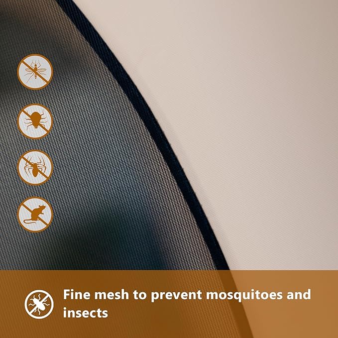 - User-friendly design: This canopy with mosquito net is crafted with a 6-sided fine mesh, it ensures 360° ventilation, shielding you from pesky bugs and offers all-day sun protection. With 2 side mesh can be opened, making it convenient to enter or exit