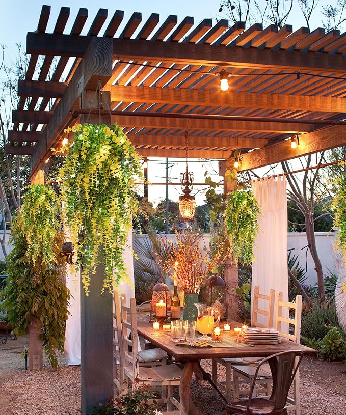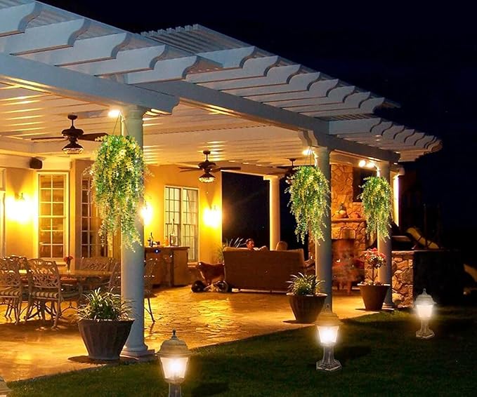 - Durable Materials:Crafted from high-quality plastic leaves and reinforced with sturdy plastic and iron wire stems, these artificial hanging plants are waterproof and designed to withstand outdoor conditions, ensuring long-lasting beauty and resilience.