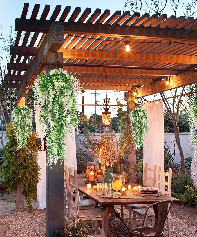 - Durable Materials:Crafted from high-quality plastic leaves and reinforced with sturdy plastic and iron wire stems, these artificial hanging plants are waterproof and designed to withstand outdoor conditions, ensuring long-lasting beauty and resilience.