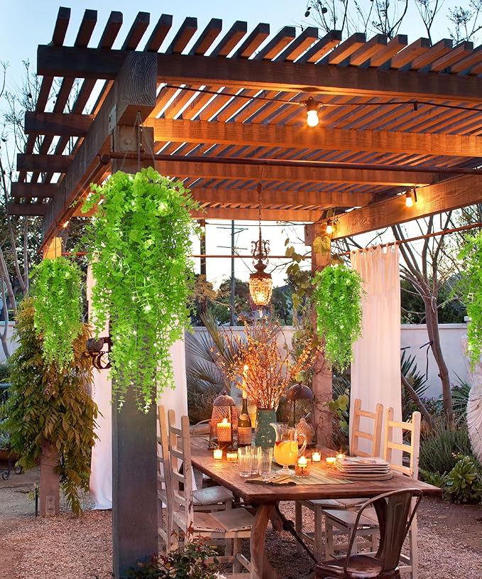 - Durable Materials:Crafted from high-quality plastic leaves and reinforced with sturdy plastic and iron wire stems, these artificial hanging plants are waterproof and designed to withstand outdoor conditions, ensuring long-lasting beauty and resilience.
