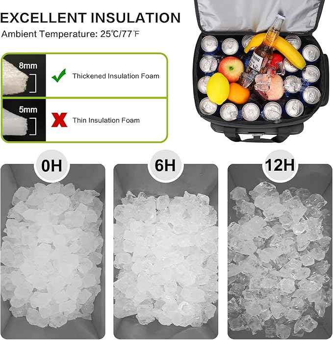 - EXCELLENT INSULATION: This soft cooler bag is equipped with 8 mm thickened foam and food-grade PEVA insulated liner can be well insulated, and ice packs or ice cubes can keep your food and drinks cool for a long time