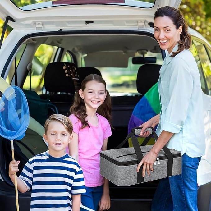 Insulated Casserole Carrier, Portable Casserole Carrier for Hot or Cold Food Lunch Tote Warmer or Cooler Bag, Lasagna Lunch Bag for Potluck Parties- Fits 9" x 13" Baking Dish-Grey