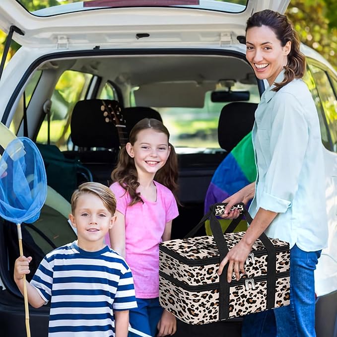 Double Insulated Casserole Carrier, Portable Casserole Carrier for Hot or Cold Food Lunch Tote Warmer or Cooler Bag, Lasagna Lunch Bag for Potluck Parties- Fits 9" x 13" Baking Dish-Leopard