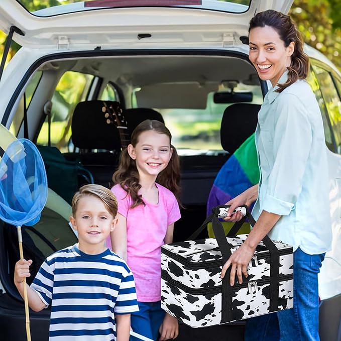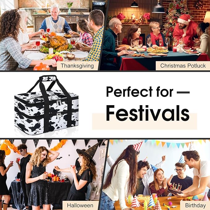 Double Insulated Casserole Carrier, Portable Casserole Carrier for Hot or Cold Food Lunch Tote Warmer or Cooler Bag, Lasagna Lunch Bag for Potluck Parties- Fits 9" x 13" Baking Dish-Cow Pattern
